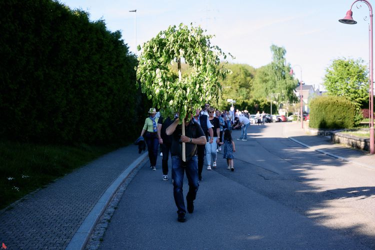 Op der Gemengeplaz gouf den den traditionellen 1. Mee-Kranz opgehaangen an eise Buergermeeschter, Sammy Wagner, huet déi offiziell Ried gehale. D’Membere vum Grupo Danças e Cantares Aldeias de Portugal hunn eis e puer vun hiren traditionellen Dänz virgefouert.