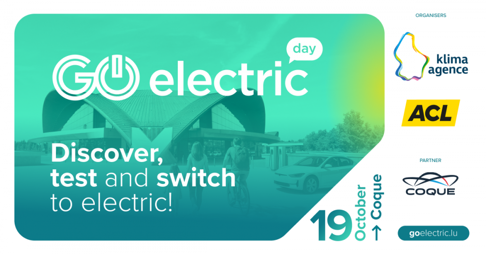 Virwëtzeg op Elektroautoen? Loscht, en Auto, Vëlo oder souguer en E-Kart ze testen? Braucht Dir Berodung zu Luedinfrastrukture, Finanzéierung oder Versécherung? Dann ass de GO Electric Day genau dat Richtegt fir Iech!