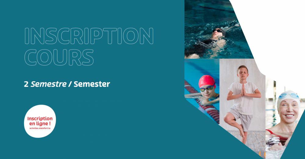 D’Aschreiwunge fir d’Coursen an der Schwämm an de Kanneryoga fänken dëse Méinden, 12. Januar 2026 em 9:00 Auer un. Dir braucht Iech net extra dofir ze deplacéieren, Dir kënnt dat ganz bequeem vun doheem oder vun der Aarbecht aus online maachen!