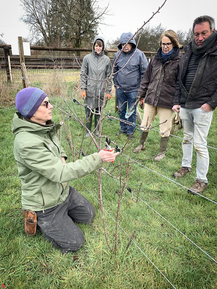 On Saturday morning, despite the cold weather, five volunteers came together to help enhance the natural environment of the “A Bruch” orchard in Kleinbettingen. Together with Michel Frisch from the natur&ëmwelt Foundation, they planted two fruit trees and around sixty perennial plants.